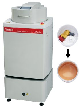 An alternative to contact mixing is planetary centrifugal mixing. The non-contact mixing action of this technology combines rotation and revolution within a set radius to achieve a fast, fully homogeneous mix. These mixers can mix, disperse and degas materials in seconds to minutes in the user’s own product container. Contrary to contact mixing, they also tend to remove air rather than cause it to be entrapped.