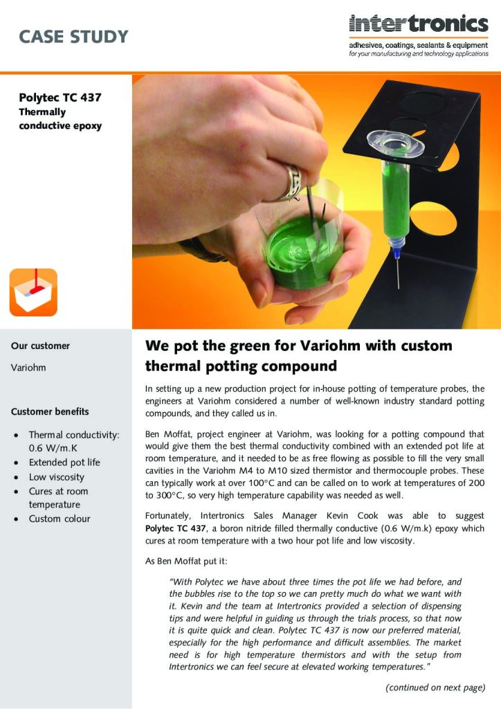 Potting compound requiring good thermal conductivity and an extended pot life in a custom made colour.