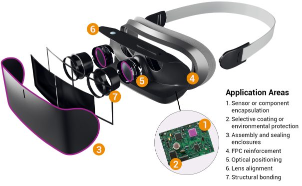 The Dymax 9200-W series has been developed without isobornyl acrylate (IBOA), a common skin irritant. They are made with low-sensitising ingredients for applications which are touching, or near the skin, such as smartwatches, fitness trackers, VR headsets or goggles, earbuds and headphones – or where devices cannot be hermetically sealed.
