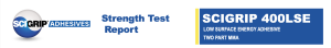 | This Strength Test Report shows that SG400LSE can bond and hold strength on polypropylene and polypropylene to aluminium. All of the specimens in the lap shear test showed either substrate stretch or failed cohesively. | ||